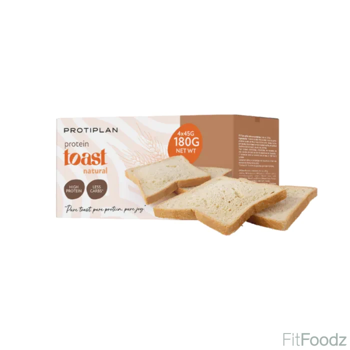 De Protiplan Protein Toast Natural is heerlijke toast zonder toegevoegde suikers. Deze toast bevat tot 87% minder koolhydraten vergeleken met reguliere toast*. Ze zijn lekker te combineren met zowel zoet als hartig beleg.