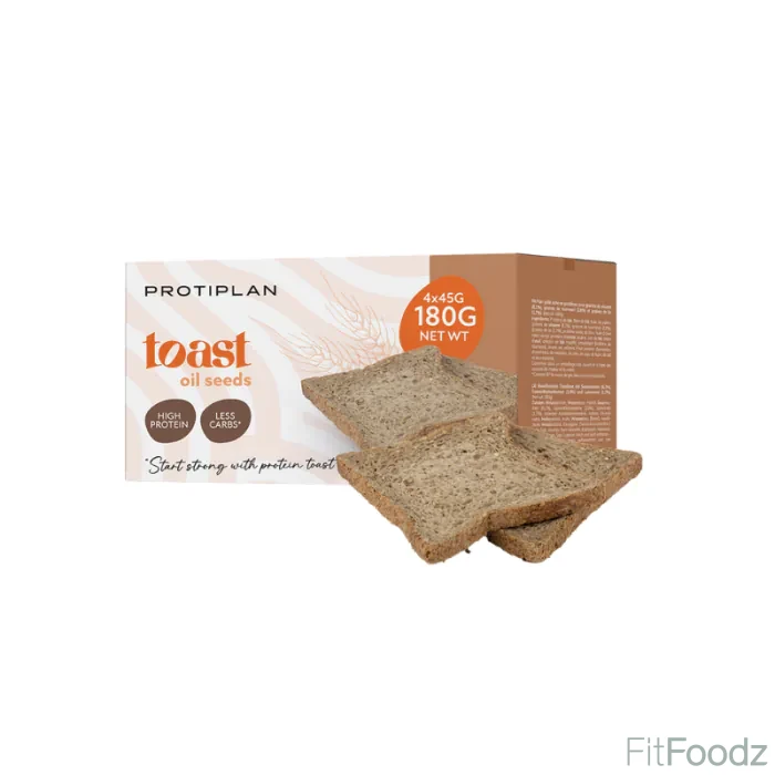 De Protiplan Protein Toast Oil Seeds is heerlijke toast met sesamzaad (8,1%), zonnebloempitten (2,8%) en lijnzaad (1,7%), zonder toegevoegde suikers. Deze toast bevat tot 87% minder koolhydraten vergeleken met reguliere toast*. Ze zijn lekker te combineren met zowel zoet als hartig beleg.